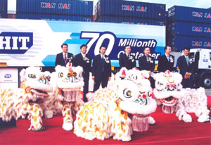 [11 November 2002 - Hong Kong] - On 11 November 2002, Hongkong International Terminals Limited (HIT) celebrated its continuing success as it handled its 70 millionth container. At a quayside ceremony attended by executives from HIT and Wan Hai Lines, the container was discharged from the vessel M/V "Wan Hai 207" V.S124. Officiating at the ceremony to mark this achievement was HIT Managing Director Eric Ip and Wan Hai Lines Vice Chairman P. T. Chen. Mr. Eric Ip said, "This has been a remarkable year for HIT. I am very pleased that HIT received the 'Best Container Terminal' award and now we have accomplished this throughput milestone. HIT is committed to offering our customers the best value-added services possible as well as being committed to the overall benefit of Hong Kong." Mr. P.T. Chen commented that HIT remains to be the premium port in the region. "Our customers demand the best shipping services available. HIT provides frequent and high quality service, and we are pleased to partner with them to provide our customers equally exceptional service." HIT continues to strive for excellence. This year the company has substantially invested in equipment to further enhance productivity and the terminal management operating system. An additional boast in handling capacity will be realized when HIT's first berth of CT9 comes on stream in 2003.