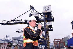 HIT’s Assistant General Manager – Operations Mr. Franco Ning introduces the two new barge cranes. [Hong Kong, 16 March 2014] Hongkong International Terminals Limited (“HIT”) has put into operation two new barge cranes, the first of their kind in southern China, as part of an ongoing effort to enhance productivity, increase competitiveness and raise customer service levels through the deployment of state-of-the-art terminal superstructure. Introducing the new equipment in a media briefing, HIT’s Assistant General Manager – Operations Mr. Franco Ning said, “HIT will ensure there are timely investments in infrastructure, machineries and systems to meet our operational needs. The new barge cranes are only the latest investments in a series of equipment upgrades.